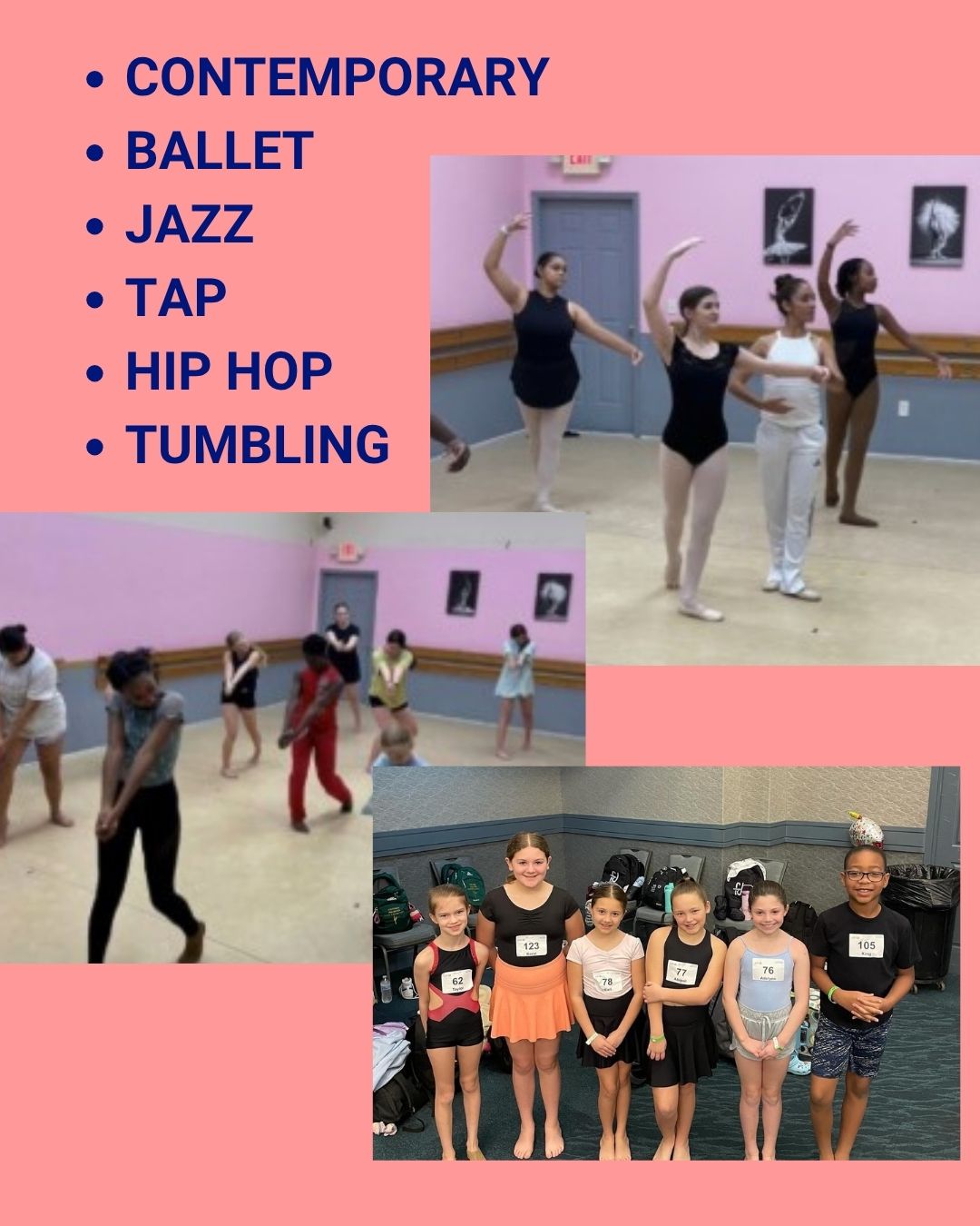 For dancers looking to dance recreationally we have a variety of classes, for dancers looking to compete and push themselves we offer our competitive team, and for dancers who are differently abled, we offer our WOW program.